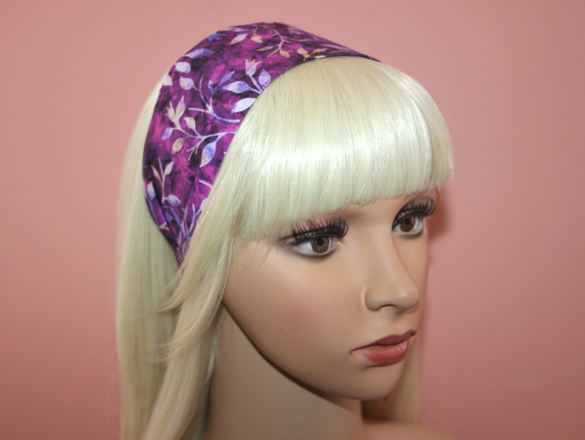 Batik headband Purple extra wide abstract print hairband bandana