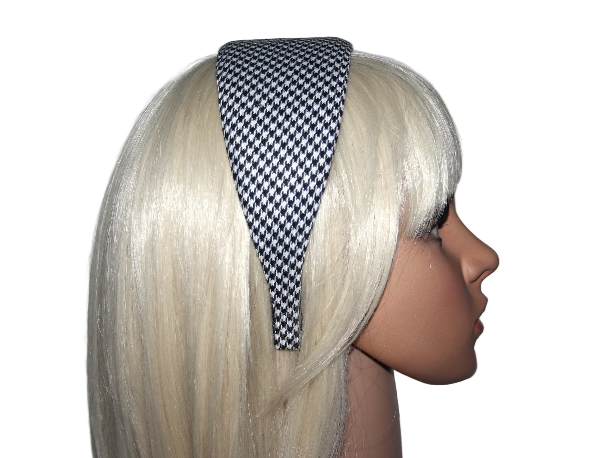 Black and White woman headband Houndstooth wide hairband, plastic free