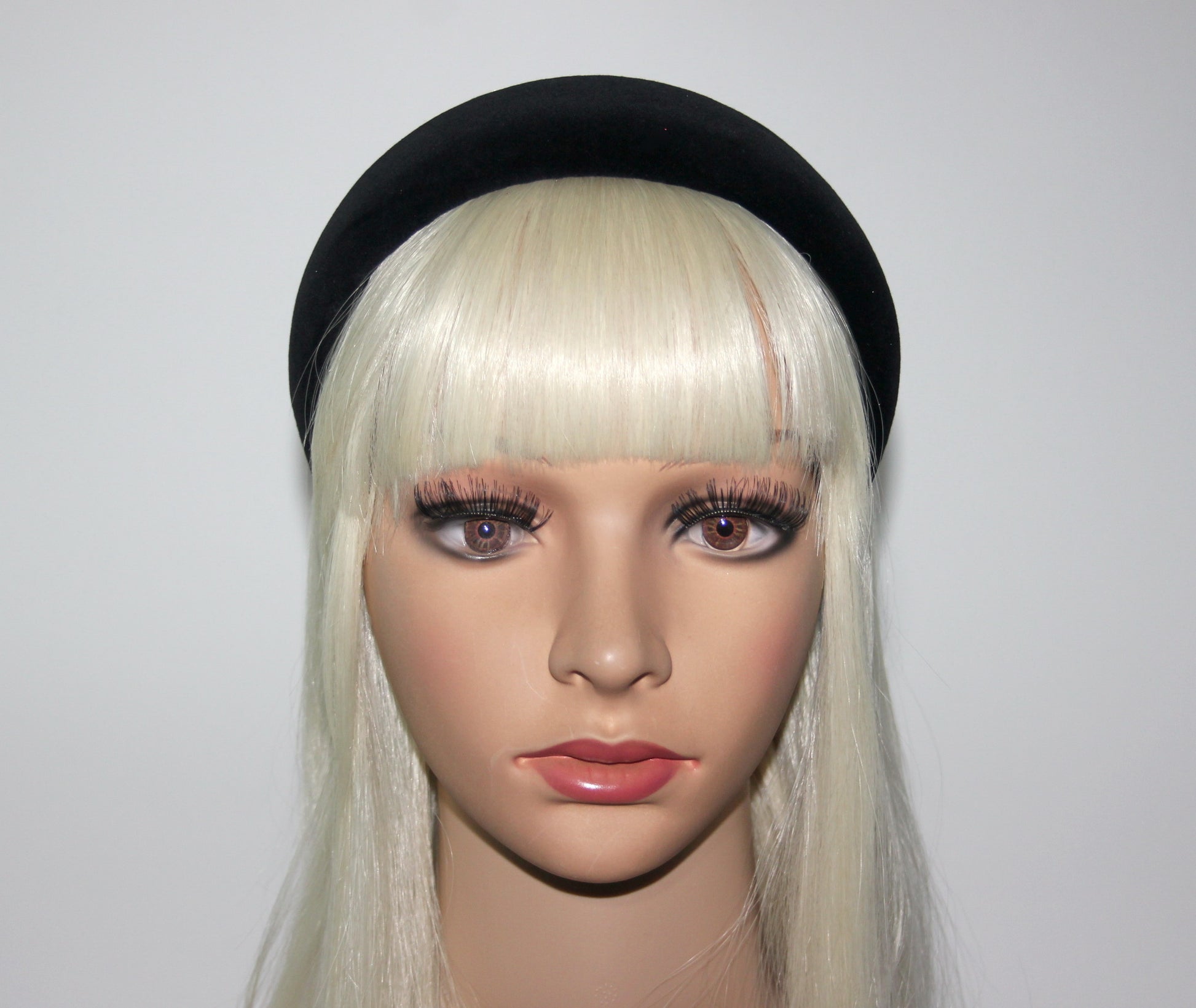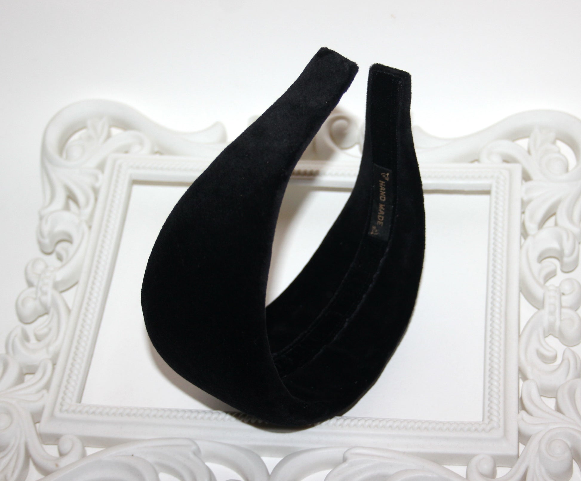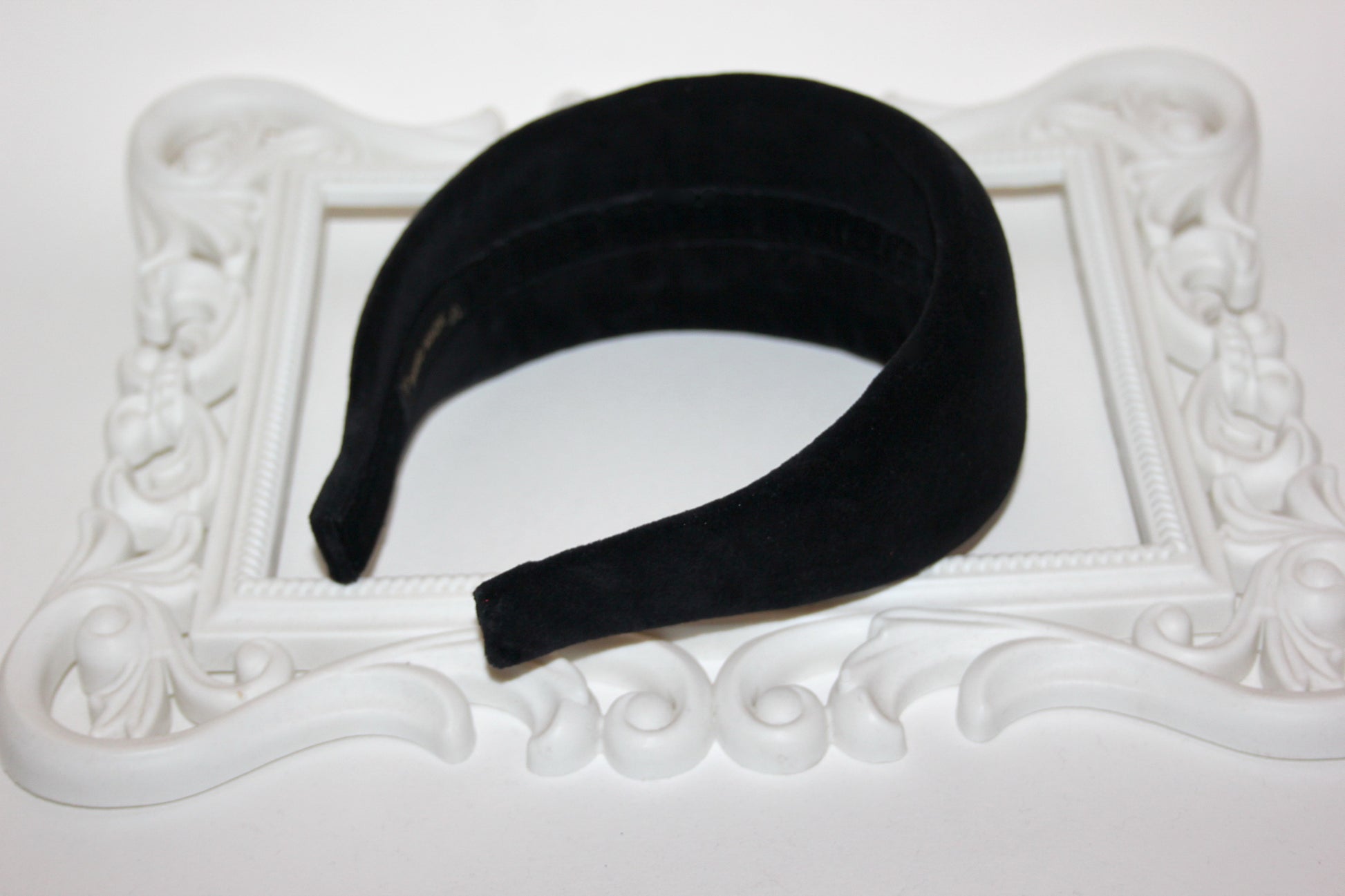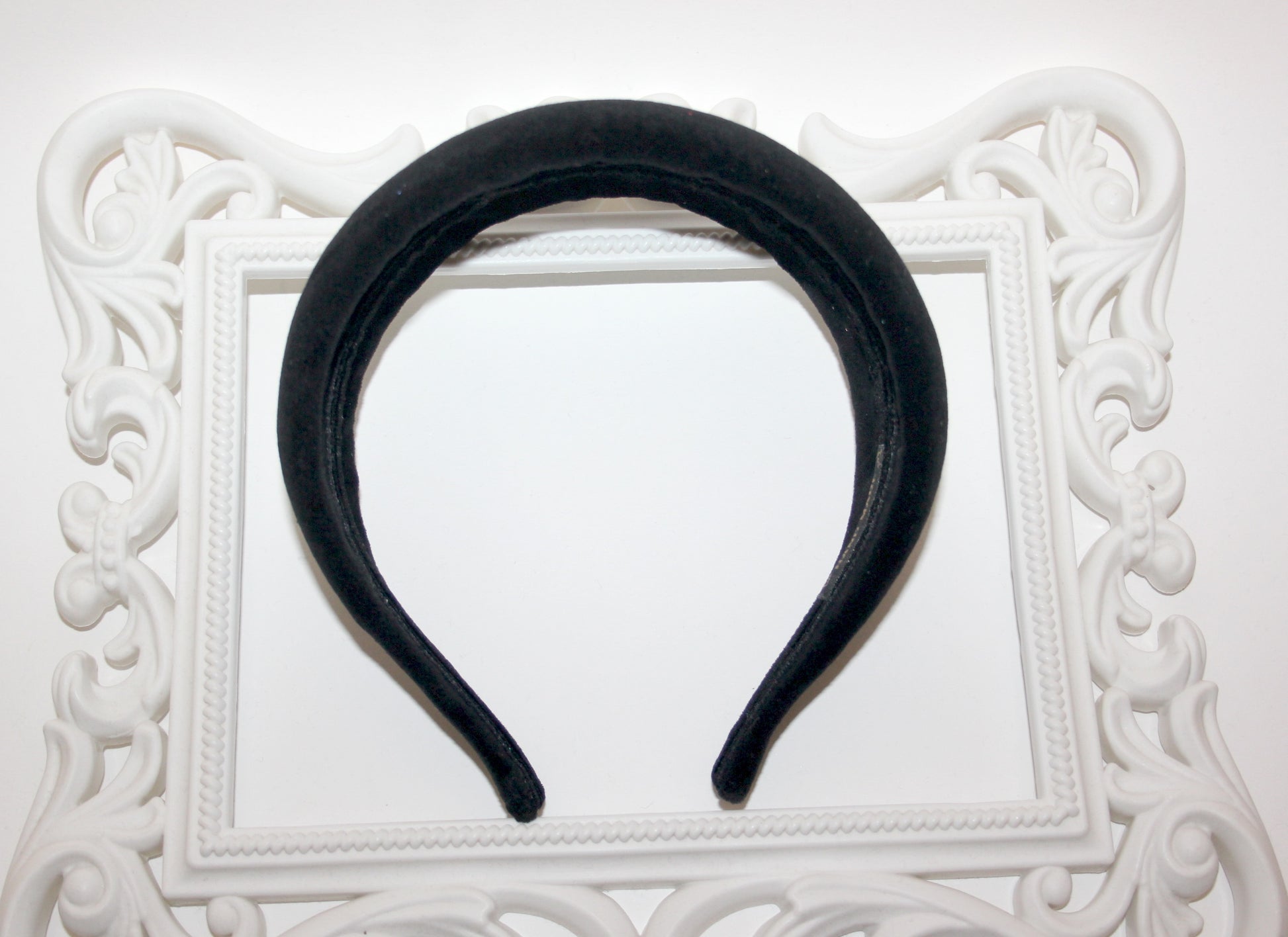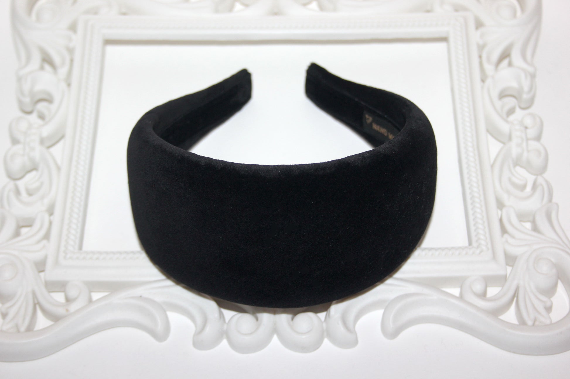 Cotton velvet puffy hairband, Black padded headband, plastic free