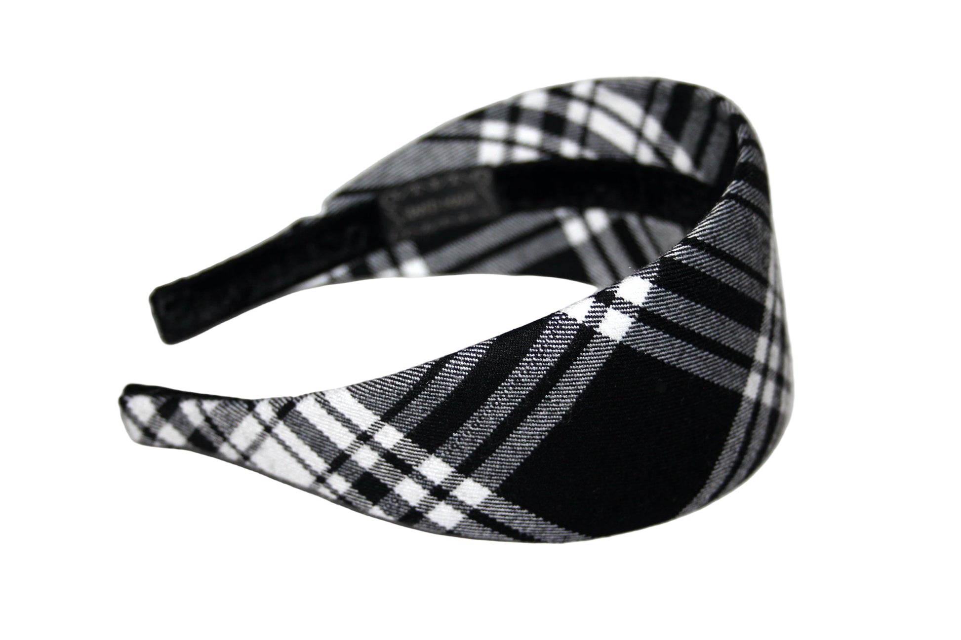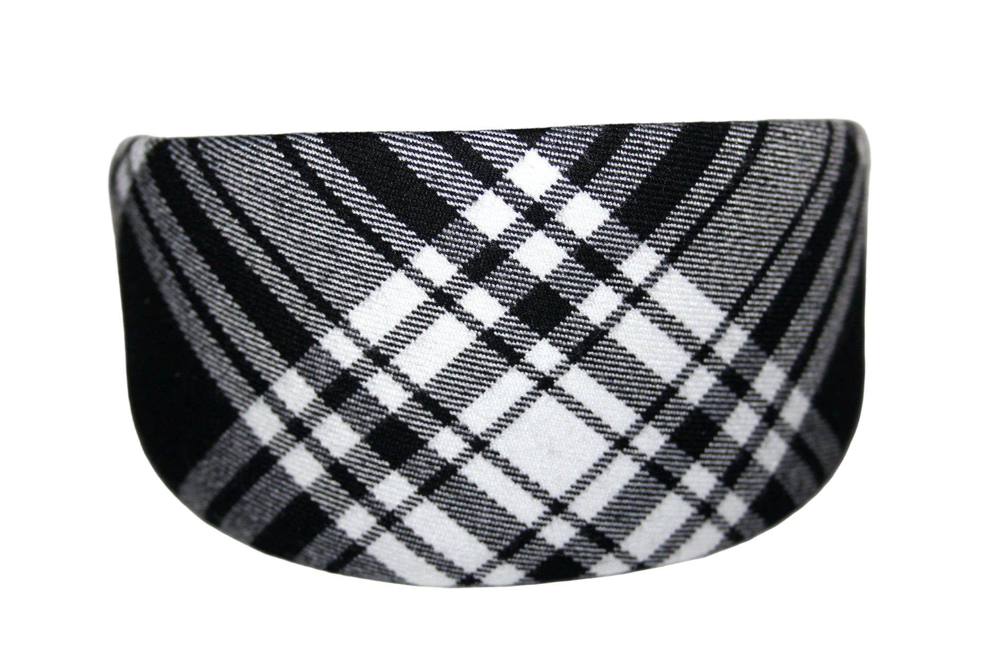 Plaid woman headband Black&White Wide tartan hairband, plastic free