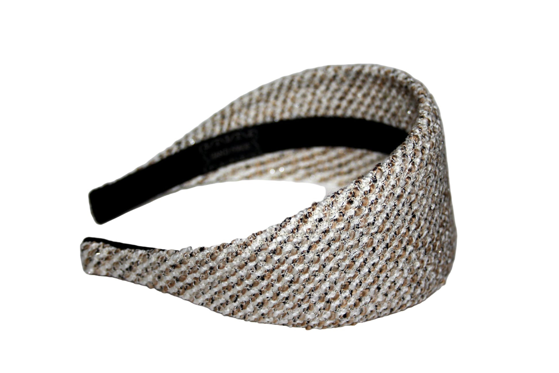 Cotton headband in bouclé effect, Ivory&Brown fashion head scarf, plastic free